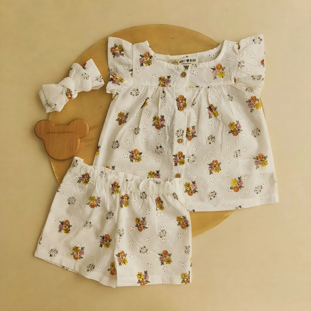 سه تیکه هدبند و شومیز و شلوارک خامه دوزی