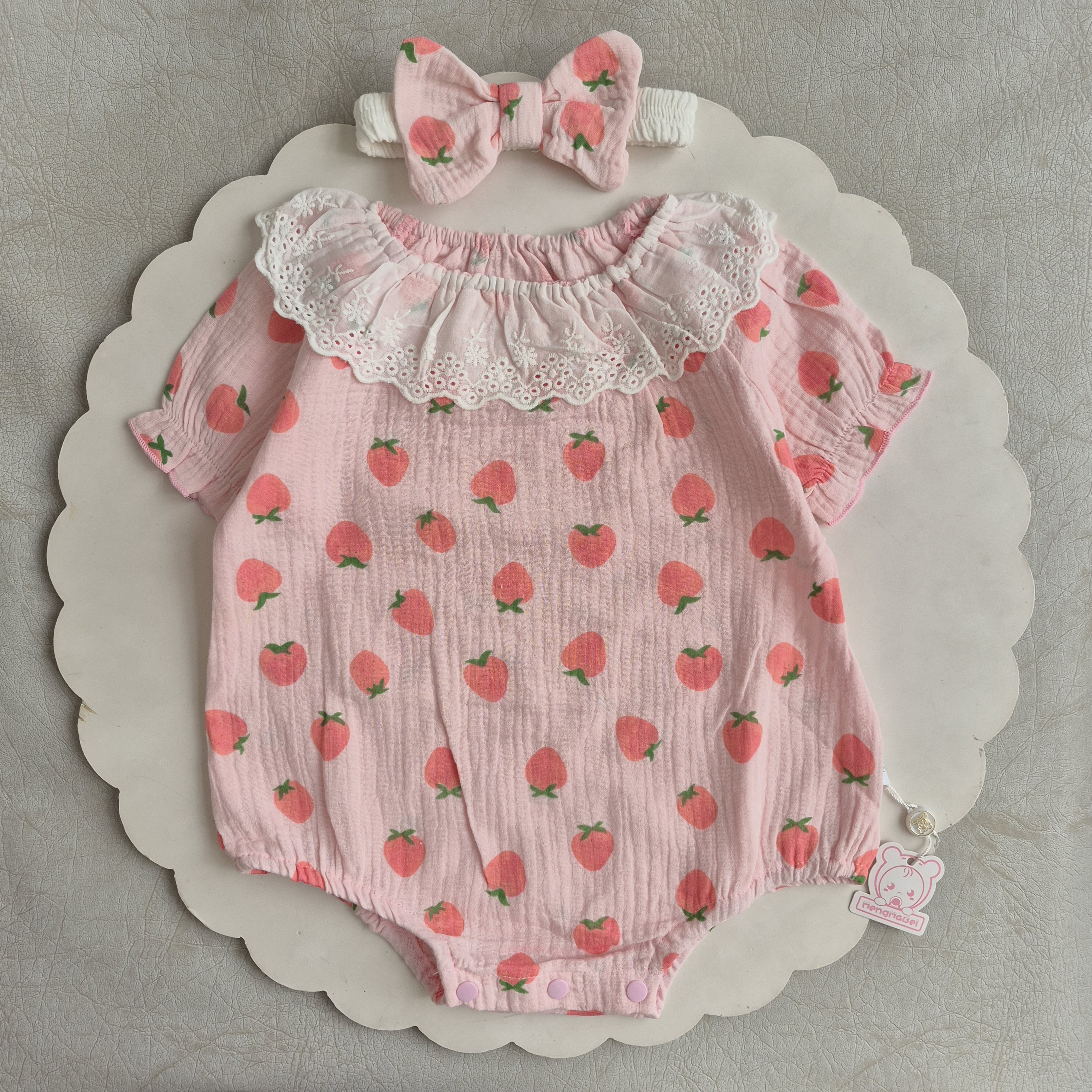 ست مجلسی بادی خامه دوزی و هدبند توت فرنگی وارداتی دخترانه